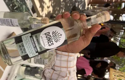 El mezcal llamado Tres Dones es una escala artesanal 100% de maguey joven, de estilo cenizo en la presentación de botella de 750 mililítros conteniendo un 4.8% de alcohol.