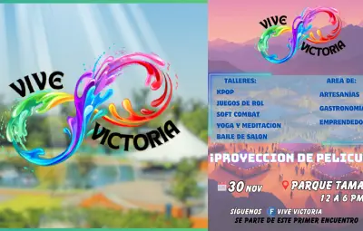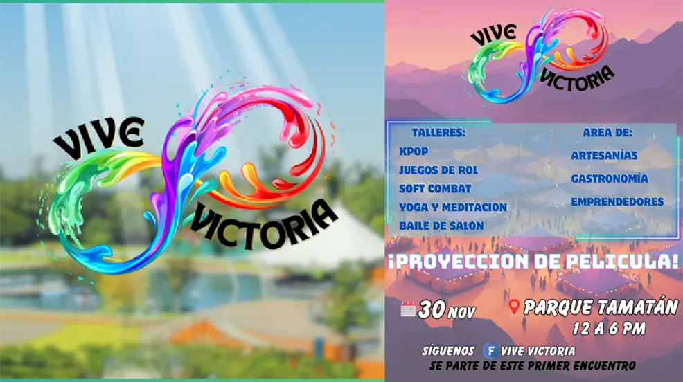 Este primer evento de Vive Victoria se llevará a a cabo en el parque Tamatán el próximo 30 de noviembre, a partir de las 12:00 pm y hasta las 06:00 pm.