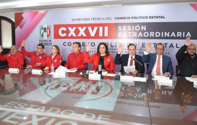 TOLUCA, Estado de México.- Durante la Sesión Extraordinaria del Consejo Político Estatal, se autorizó a la dirigencia del PRI mexiquense a buscar acuerdos con otros partidos políticos para formar coaliciones electorales y candidaturas comunes.