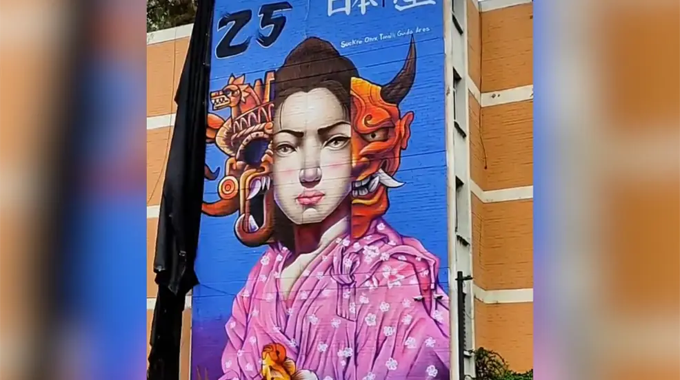 El mural, que se encuentra en la Unidad Habitacional Vicente Guerrero, cerca del Barco Utopía, incluye los kanji 墨, que se leen como "boku" y también se usan en Japón para nombrar a México, junto a 日本 (Nihon/Japón), simbolizando la unión entre ambos países. Los muralistas que participaron en la creación de esta obra son Guido E. Morales, Tonalli Jaguar y Tamatsi Wawatsari, quienes han contribuido con su talento y visión artística.