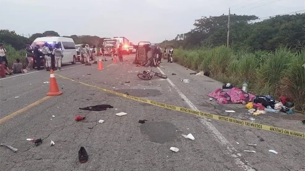 Una caravana de migrantes fue embestida por una camioneta en la carretera Panamericana 190, tramo La Blanca-Niltepec, en Oaxaca, dejando un saldo de tres muertos y 20 heridos.