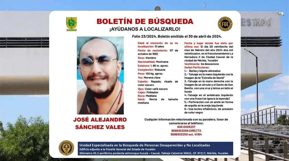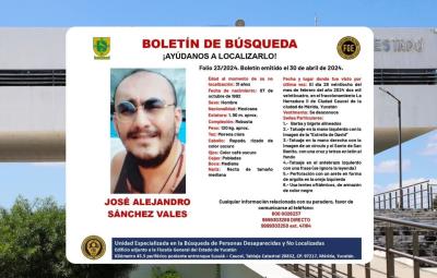 Emiten boletín de búsqueda para localizar a Jorge Alejandro Sánchez en Yucatán