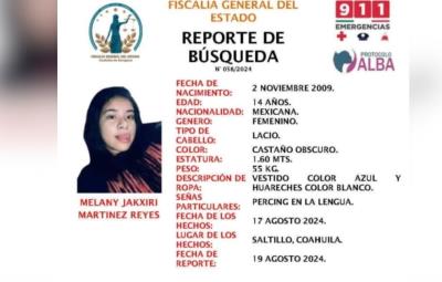 Emiten reporte de búsqueda de Melany, joven de 14 años desaparecida en Saltillo