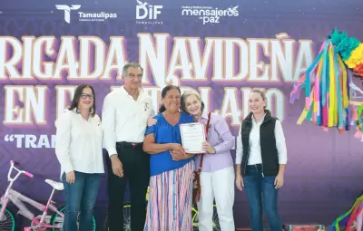 Tula, Tamaulipas.- Las y los habitantes del altiplano tamaulipeco cuentan con todo el apoyo del Gobierno del Estado para resolver sus demandas sociales y necesidades, afirmó el gobernador de Tamaulipas, Américo Villarreal Anaya, al encabezar junto a la presidenta del Sistema DIF Tamaulipas, María de Villarreal, la Brigada Navideña en el Altiplano "Transformando Familias", en la cual se entregaron múltiples beneficios, desde medicamentos hasta implementos agrícolas.