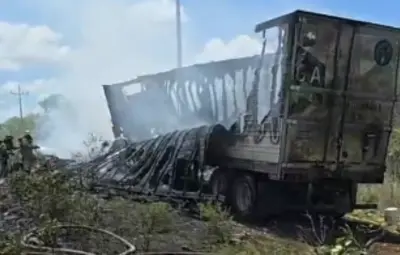¡En llamas! Incendio consume un tráiler en la carretera Mérida-Tetiz