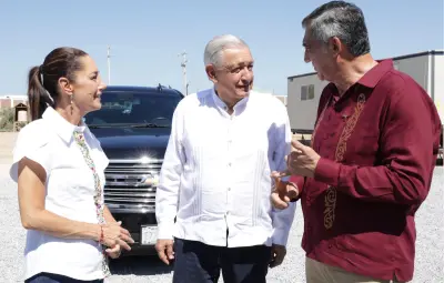 López Obrador y Sheinbaum llegaron la noche del viernes a Nuevo Laredo y este sábado recibieron información sobre el avance de esta magna obra de parte del secretario de la Defensa Nacional, Luis Cresencio Sandoval y el director general de Aduanas, André Georges Foullon Van Lissum.