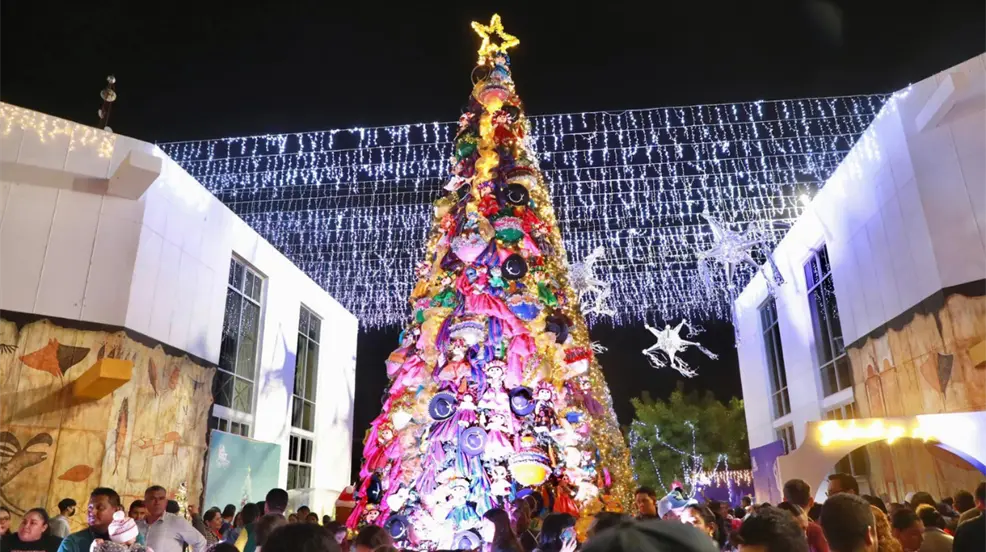 Encienden luces de árbol de Navidad en La Paz