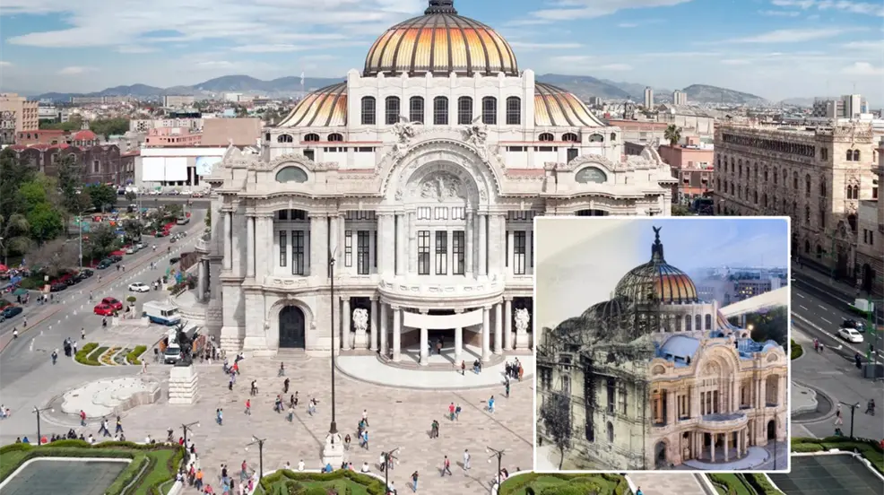 La construcción del Palacio de Bellas Artes comenzó durante el gobierno de Porfirio Díaz, bajo la dirección del arquitecto italiano Adamo Boari, con la intención de celebrar el centenario de la independencia de México. Sin embargo, la Revolución Mexicana y otros conflictos sociales retrasaron la finalización de la obra hasta la década de 1930. Desde entonces, su icónica fachada de mármol blanco y las cúpulas de vibrante color naranja se han convertido en un distintivo inconfundible de la Ciudad de México.