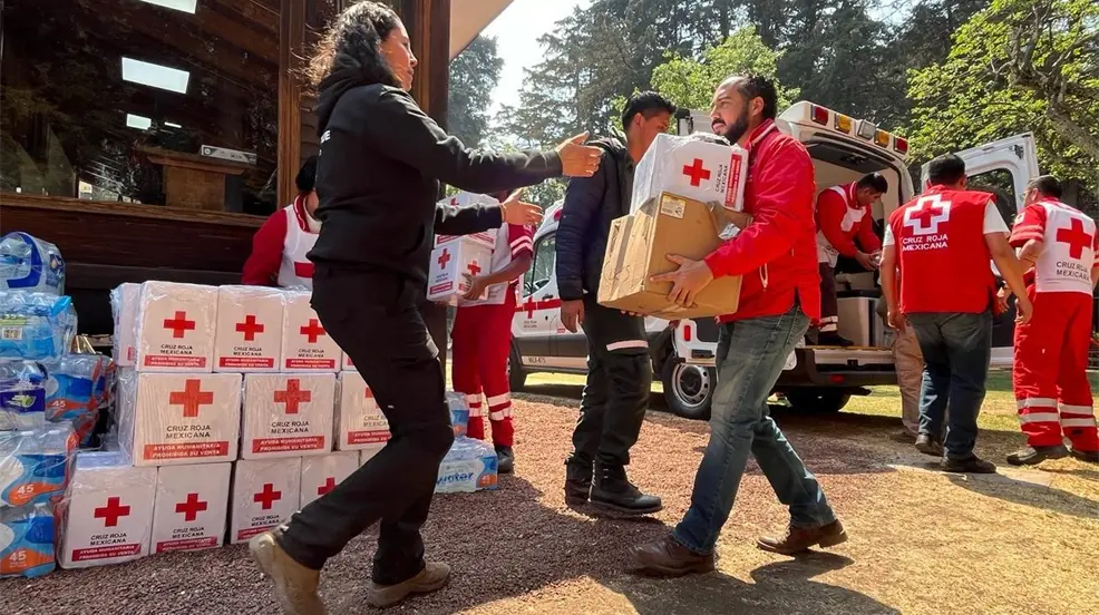 Entrega Cruz Roja primera ayuda a brigadistas del Edomex