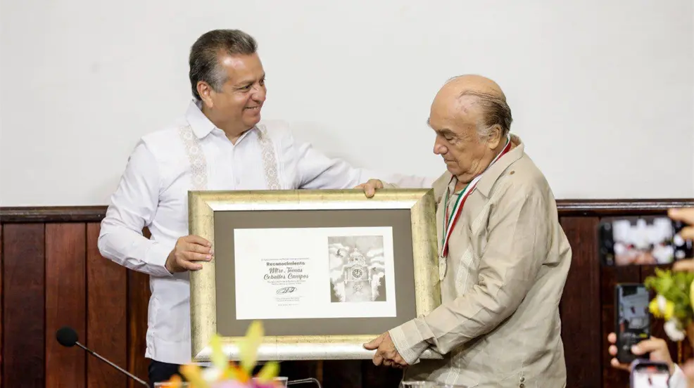 En sesión solemne de cabildo, el alcalde Alejandro Ruz Castro entregó la presea al destacado maestro.