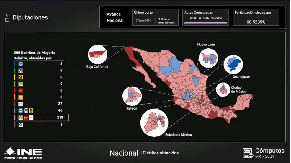 Mencionar que las diferentes Juntas Distritales del INE hicieron lo mismo con las candidaturas ganadoras de los distritos; entegandoselas a Martha Olivia García Vidaña en el distrito 01; en el Distrito 02 a Betzabé Martínez Arango; en el Distrito 03 a Gerardo Villarreal todos ellos de la coalición Sigamos Haciendo Historia y en el distrito 04 a Patricia Jiménez de la coalición Fuerza y Corazón por México.