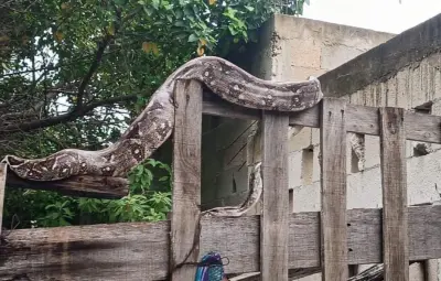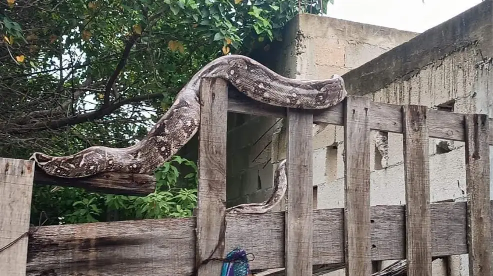 ¡Es la boa! Enorme serpiente sorprende a vecinos de Progreso
