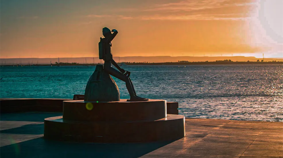 El Malecón de La Paz destaca por sus atardeceres impresionantes que se unen con sus esculturas. Estas obras rinde homenaje a la relación con el mar, como la escultura dedicada a Jacques Cousteau.