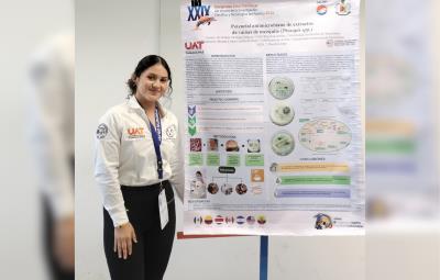 Su proyecto, titulado Potencial antimicrobiano de extractos de vaina de mezquite fue presentado en el Congreso Internacional del Verano de la Investigación Científica y Tecnológica del Pacífico 2024.
