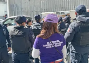 Durante la audiencia de este día, un grupo de policías estatales intentaron retirar a las manifestantes, y por momentos se registraron momentos de tensión.