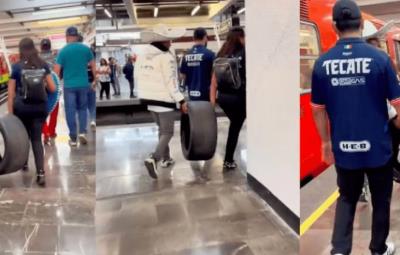 Hizo viral un video donde se ve a un fanático de la Fórmula 1 llevando una llanta, después de que la carrera concluyera. Fue captado en el metro capitalino.