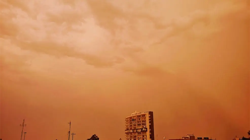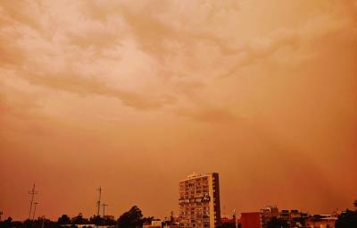 Entre diversas fotos y videos, se puede apreciar el espectáculo de una tormenta eléctrica, con el cielo de la capital oscureciéndose y adquiriendo tonalidades anaranjadas y rojizas.