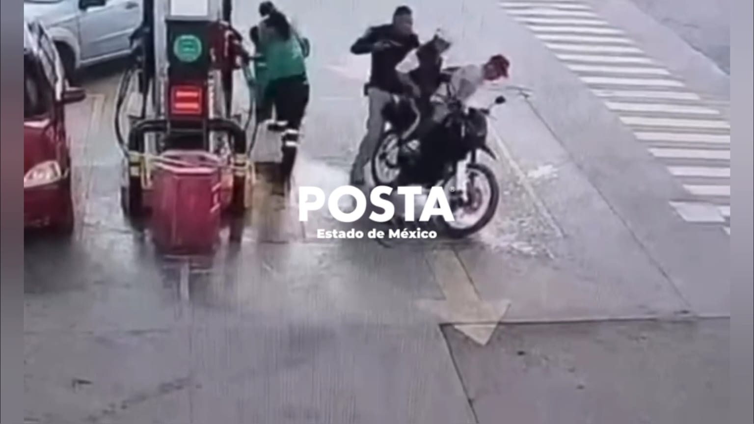 TEOLOYUCAN, Estado de México.- La trabajadora de una gasolinera evitó ser asaltada por dos sujetos, al rociarles gasolina en la cara.