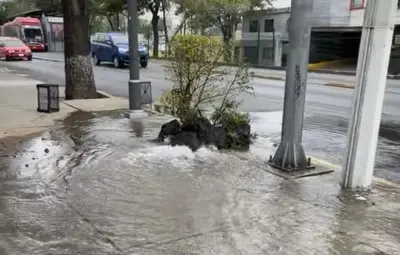 Fuerte fuga de agua afecta a peatones y automovilistas en Tlalpan