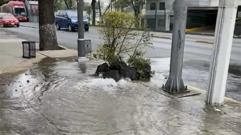 La ruptura de una tubería de cuatro pulgadas que se ubica debajo de la banqueta, genera el derrame de cientos de litros de agua potable en la avenida Insurgentes.