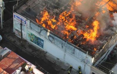 El siniestro provocó el colapso de la techumbre y la suspensión de transporte público en la zona.