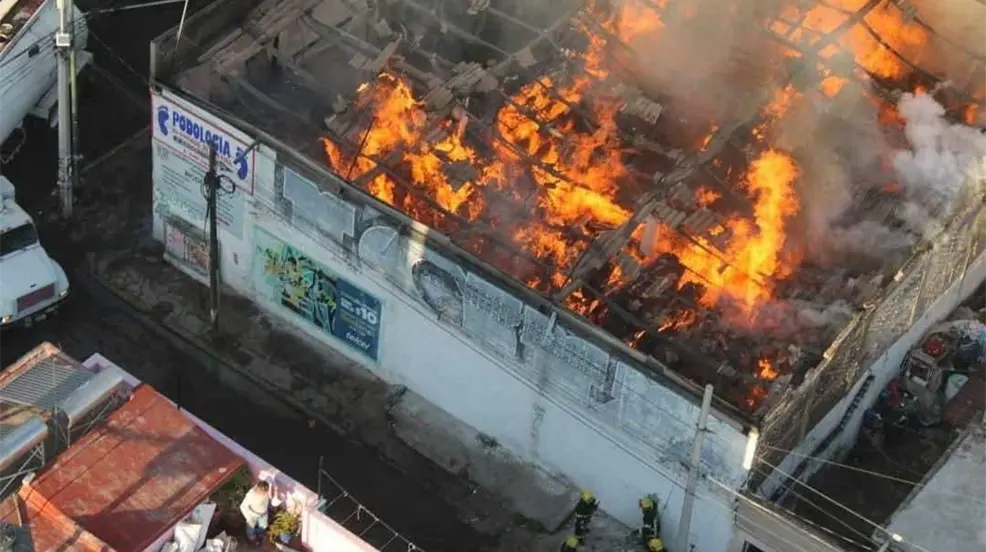 NEZAHUALCÓYOTL, Estado de México.- Un fuerte incendio destruyó por completo una maderería en la colonia Benito Juárez, ubicada en el municipio de Nezahualcóyotl. El siniestro ocurrió en el cruce de la avenida Chimalhuacán y la calle Dos Arbolitos, donde el fuego se propagó rápidamente debido a la gran cantidad de materiales inflamables almacenados en el lugar, como tablones y tarimas para cimbra. La intensidad de las llamas provocó el colapso de la techumbre del edificio, dificultando las tareas de extinción.