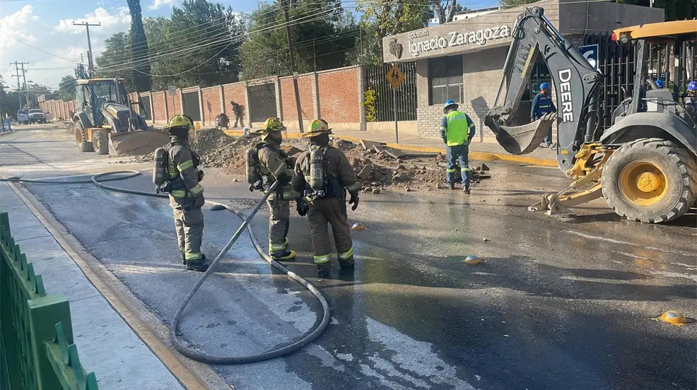 SALTILLO, Coahuila. Una fuerte fuga de gas generó pánico el viernes 18 por la tarde en las inmediaciones del Colegio Ignacio Zaragoza (CIZ), ubicado al norte de Saltillo. La situación ocurrió cuando una máquina retroexcavadora de Aguas de Saltillo (Agsal) dañó una tubería de gas natural mientras realizaban trabajos de reparación sobre la avenida La Salle, entre las calles Cesáreo Boillot y Lago Pátzcuaro.