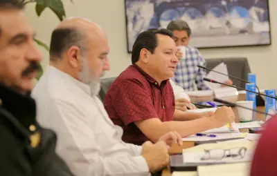 MÉRIDA, Yucatán.- En reunión con integrantes de su gabinete legal y ampliado, Joaquín Díaz Mena recibió los reportes de los avances en la atención a las familias afectadas en los municipios costeros, por el paso del huracán Milton.