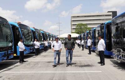 Vila Dosal supervisó nuevas unidades Yutong híbridas, Volvo y Mercedes Benz que muy pronto se integrarán al Sistema de Transporte 'Va y Ven' a través de 11 rutas.