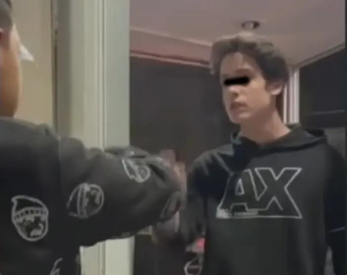 El joven, que según vecinos es estudiante de preparatoria de la Universidad Anáhuac, se dio cuenta que lo estaban grabando.