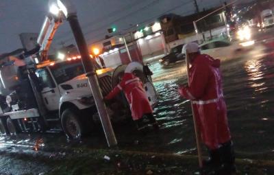 La fuerza de trabajo desplegada en la zona logró abatir encharcamientos en la colonia Cerro Gordo, Nuevo Laredo y Benito Juárez, así como retirar el granizo acumulado en la Av. Acueducto en Tulpetlac.