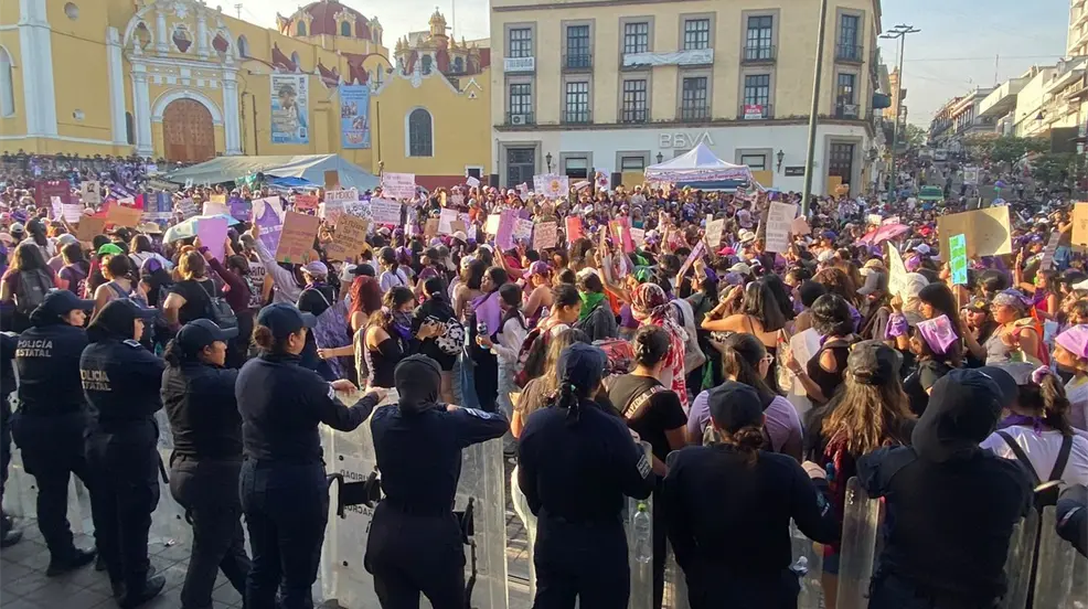 Pero por más de una hora, las manifestantes arrojaron piedras, palos y macetas que estaban en la plaza principal.