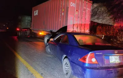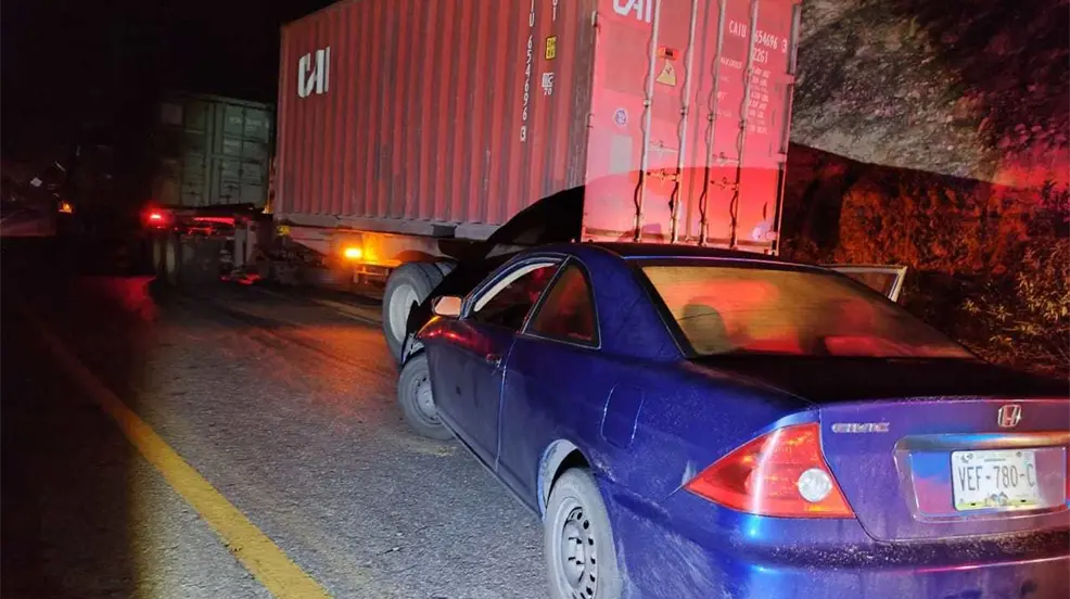 Según el reporte del C5, un tractocamión de doble remolque, que se dirigía de Guadalajara, Jalisco, a Altamira, Tamaulipas, fue impactado por un automóvil Honda Civic en la parte trasera.
