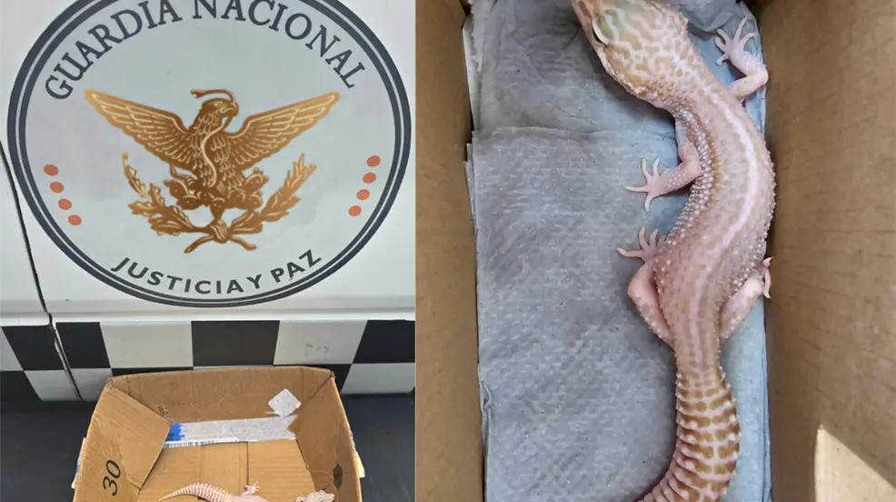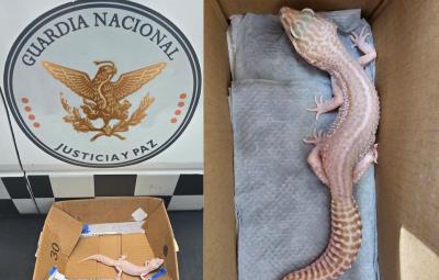 ZACATECAS.- En Zacatecas, la Guardia Nacional rescató un gecko leopardo, especie exótica no originaria de México, que fue enviado por paquetería desde la Ciudad de México en condiciones inapropiadas.