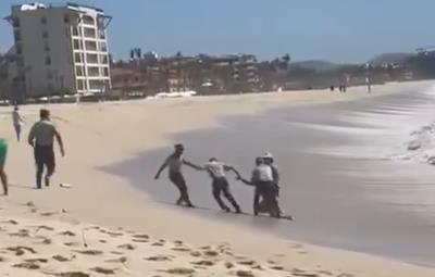 Guardia Nacional salva a turistas gringos de ahogarse en San José del Cabo, BCS