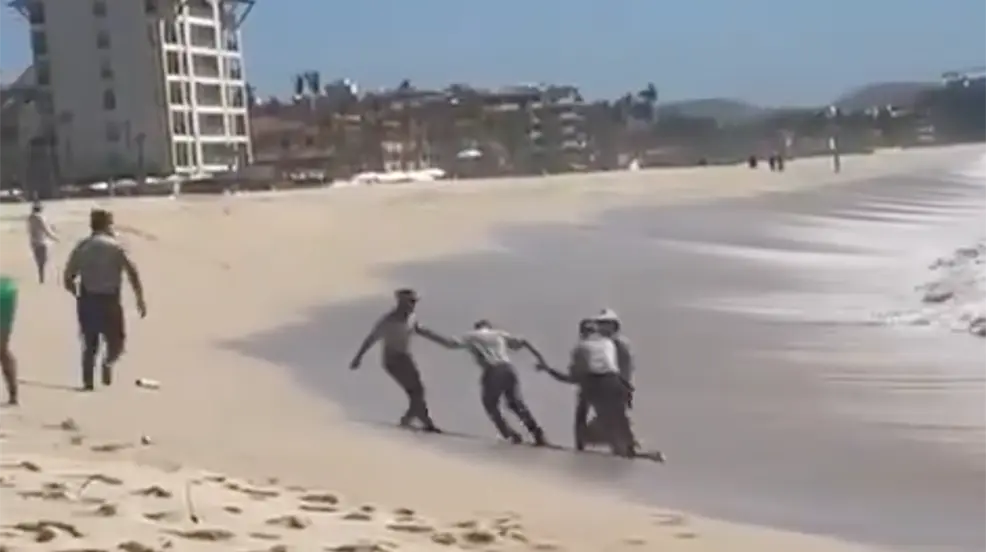 El viernes pasado, un video en redes sociales mostró cómo dos turistas estadounidenses mayores estuvieron al borde de la muerte tras ser arrastrados por las olas en playa Costa Azul, San José del Cabo