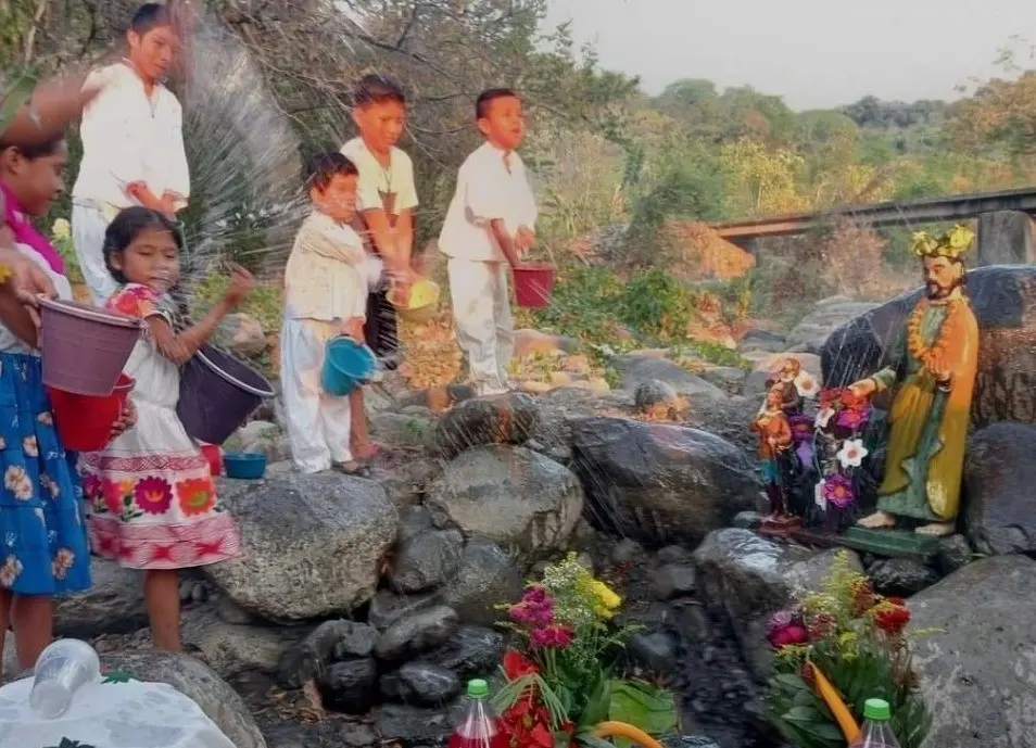 Es por ello, que tanto menores y adultos todos ellos de la comunidad indígena Cuapaxtitla, del municipio de Huejutla, realizaron un ritual para atraer a la lluvia, resultado del sincretismo religioso que sus padres y abuelos les enseñaron.
