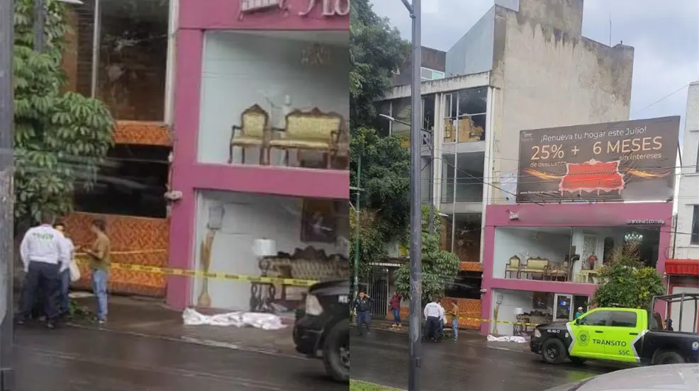 COYOACÁN, Ciudad de México. - Transeúntes y empleados de una mueblería, quedaron atónitos al ver que una mujer que caminaba sobre la acera donde se ubica el establecimiento comercial, se desvaneciera y cayera de manera contundente contra el suelo.