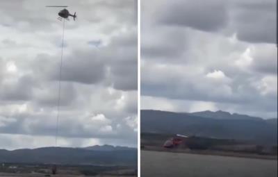 Helicóptero se desploma en presa de Chihuahua, rescatan a tripulantes | VIDEO