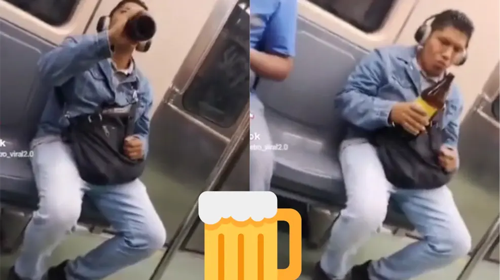 Hombre es captado tomando una caguama en el Metro de la CDMX