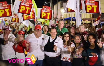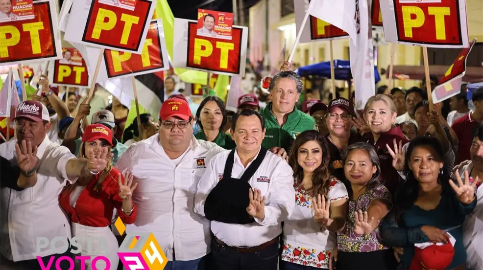 Acompañado de su esposa, la profesora Wendy Méndez Naal, y otros miembros de su equipo de campaña, Díaz Mena llamó a la ciudadanía a votar por los candidatos de Morena, PT y Partido Verde en las próximas elecciones del 2 de junio.