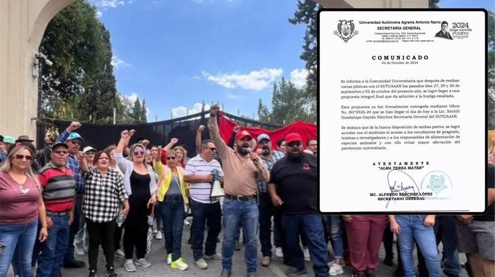 SALTILLO, Coahuila.- Tras varias jornadas de negociaciones, la Universidad Autónoma Agraria Antonio Narro (UAAAN) y el Sindicato Único de Trabajadores de la UAAAN (SUTUAAAN) llegaron a un acuerdo para poner fin a la huelga que afectaba a los campus de Saltillo y Torreón. Las pláticas, que se llevaron a cabo los días 27, 29 y 30 de septiembre, así como el 2 de octubre, culminaron en una propuesta integral que fue aceptada por ambas partes.
