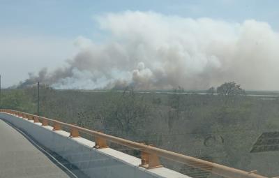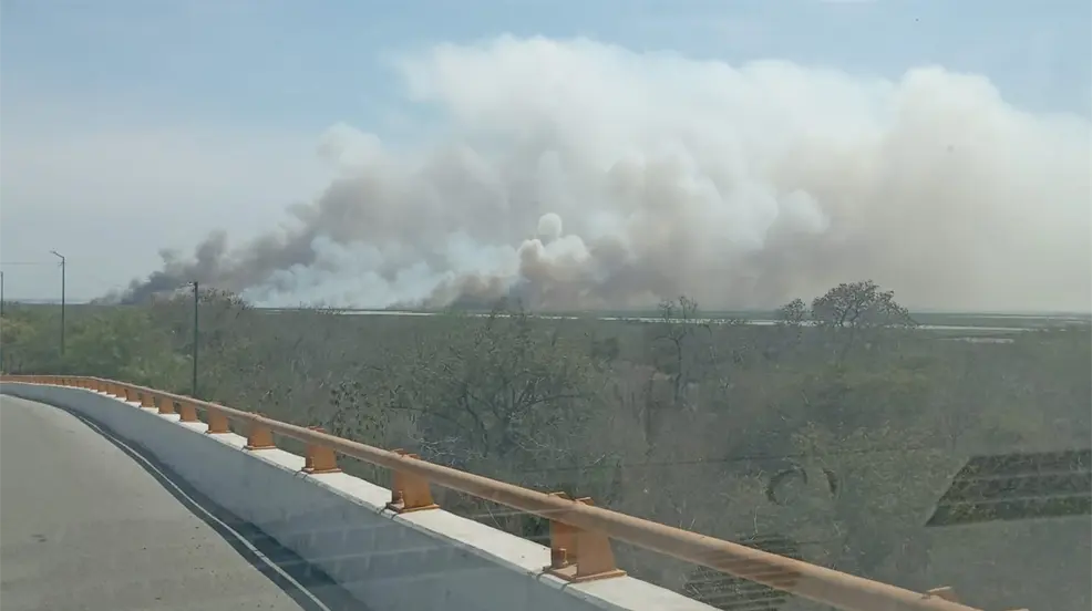 Actualmente hay un incendio de Tular activo en la zona del sistema lagunario, pese a la gran altura de la columna, no hay olor a humo como en las madrugadas.