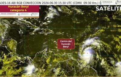MÉXICO.- El huracán Beryl ha intensificado su fuerza alcanzando la categoría 4, sin embargo, la Comisión Nacional del Agua, ha informado en su último reporte emitido este domingo a las 11 de la mañana; que no representa un peligro para el territorio mexicano.