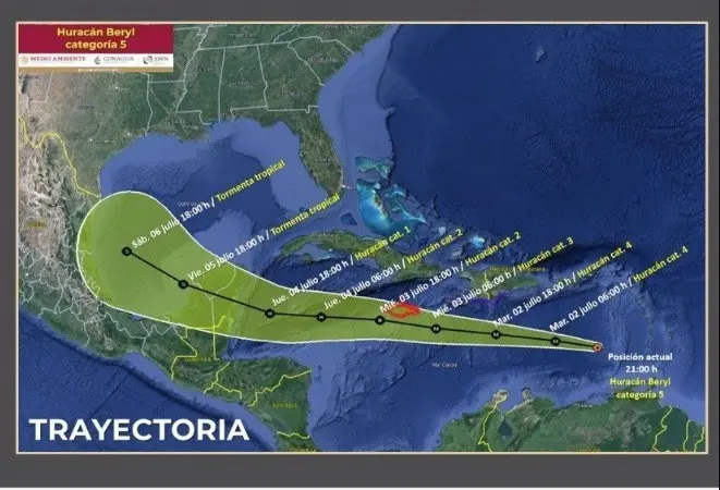 Huracán Beryl: amenaza de categoría 5 en el Caribe