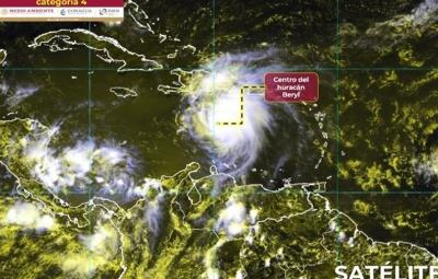 Huracán "Beryl" categoría 4 mantiene trayectoria hacia la Península de Yucatán