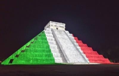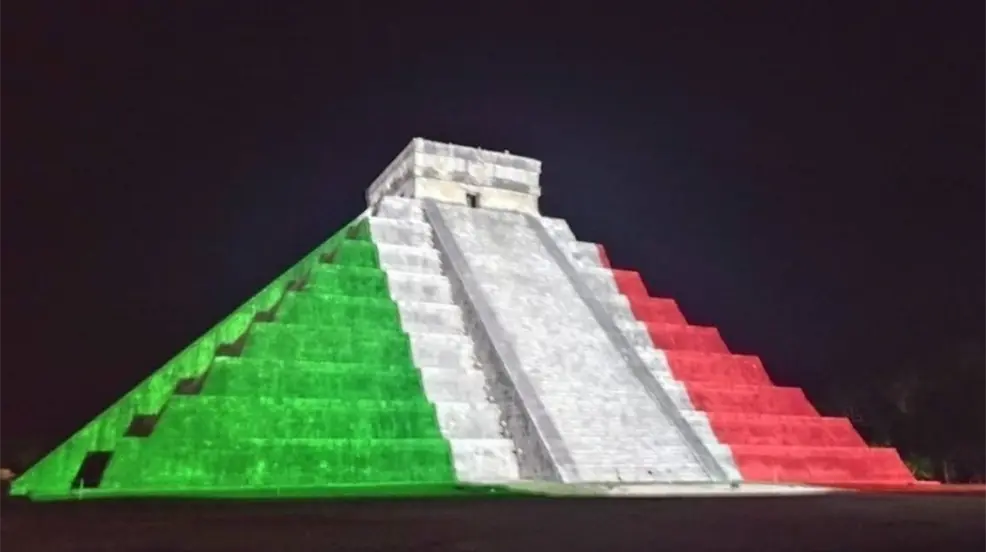 En un gesto conmemorativo sin precedentes, el gobernador de Yucatán, Mauricio Villa, encendió la pirámide de Kukulcán en ChichénItzá con los colores de la bandera nacional de México, para celebrar el 213 Aniversario de la Independencia del país.
