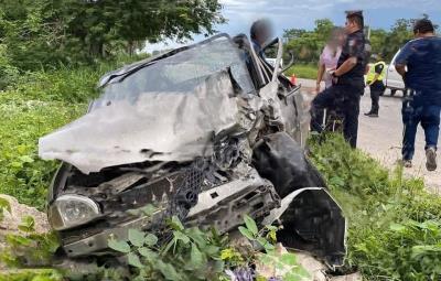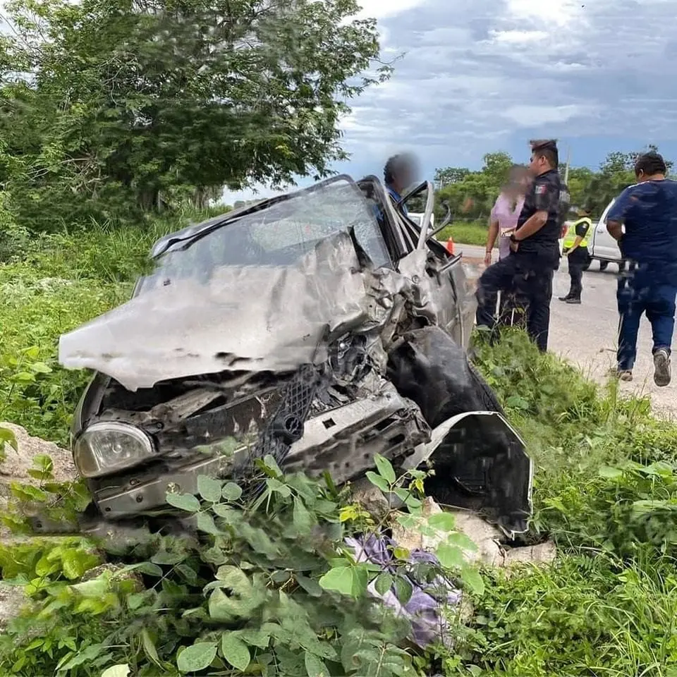Impactante choque en Conkal deja un herido y un auto destrozado