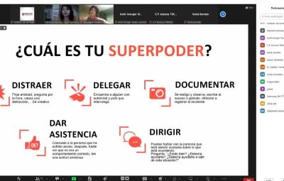 Montes también destacó la estrategia para romper el efecto transeúnte, que consiste en evaluar la situación y priorizar la seguridad personal, ser consciente de los factores que impiden actuar y elegir cuál de las 5 “D” aplicar en ese momento.