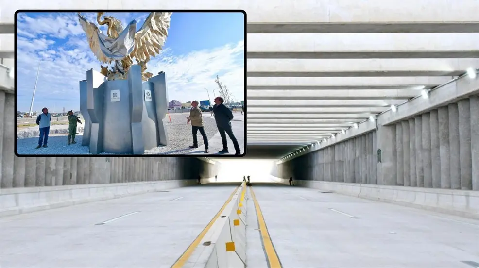 El director de Obras Públicas, Juan Adolfo Von Bertrab Saracho, explicó que la obra incluye un viaducto de 586 metros lineales, 64 mil metros cúbicos de excavación y mil 250 toneladas de acero de refuerzo. Además, se plantaron 125 árboles nuevos y se instalaron 86 reflectores y 44 arbotantes de 10 metros de altura. La escultura 'Torreón Siempre Libre', inspirada en el Águila de la Independencia, es un elemento destacado de la rotonda.